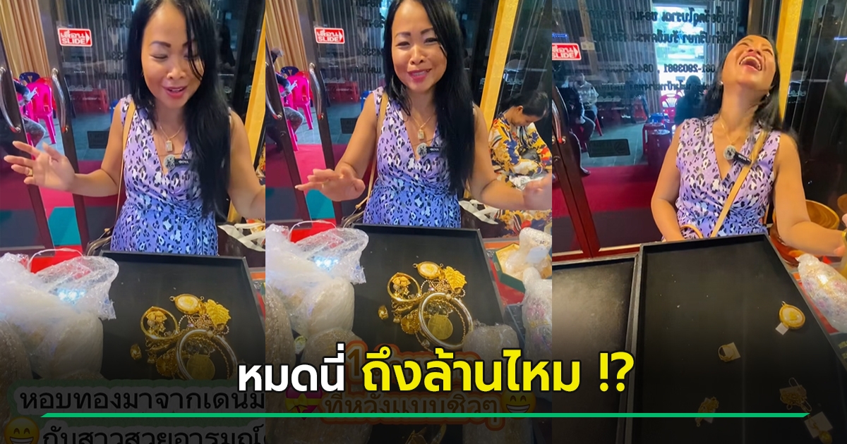 หอบทองมาจากแดนไกล เต็มโต๊ะเหลืองอร่าม ทองคำที่สงสัย อยากได้สัก 1 ล้าน ร้านทองเฉลยมูลค่าจริงกี่บาท ชาวเน็ตเอ็นดูหนักมาก