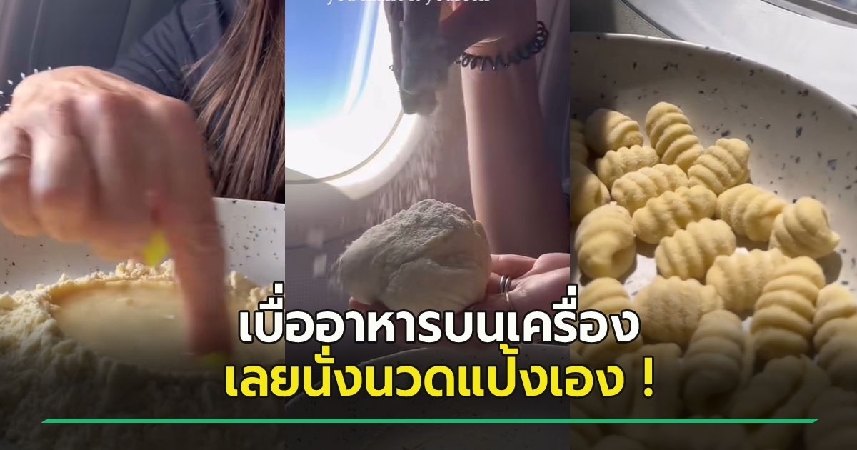 คลิปไวรัลคนวิจารณ์เดือด ผู้โดยสารสาวทำแป้งพาสต้าบนเครื่องบิน นั่งนวดแป้งอยู่กลางอากาศ เหตุเพราะไม่ชอบอาหารบนเครื่องบิน