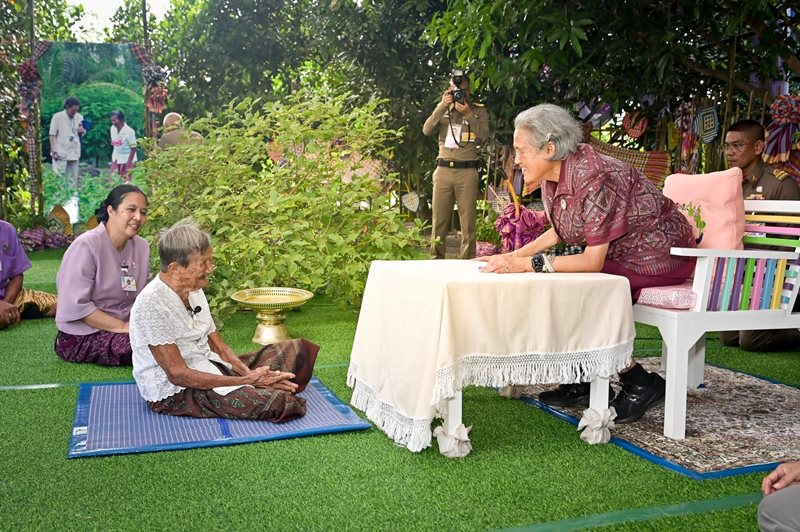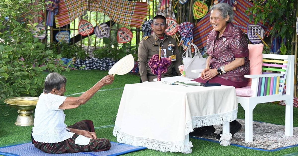 กรมสมเด็จพระเทพฯ เสด็จฯ ทรงเยี่ยมคุณยายวัย 97 ปี และราษฎรที่จ.ลพบุรี โดยคุณยายได้ถวายพัดสาน พระองค์ถึงกับแย้มพระสรวล