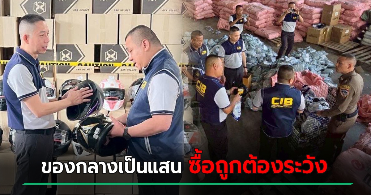วันที่ 25 กันยายน 2568 ตำรวจสอบสวนกลาง (CIB) โดยกองบังคับการปราบปรามการกระทำความผิดเกี่ยวกับการคุ้มครองผู้บริโภค (บก.ปคบ.) ร่วมกันตรวจยึด หมวกนิรภัยสำหรับผู้ใช้รถจักรยานยนต์ กว่า 50,000 ใบ ปลั๊กพ่วงกว่า 50,000 ชิ้น และอื่น ๆ รวมของกลางกว่า 100,000 หน่วย รวมมูลค่าของกลางกว่า 30 ล้านบาท จากการตรวจค้นโกดังเก็บสินค้าในพื้นที่ อ.พุทธมณฑล จ.นครปฐม