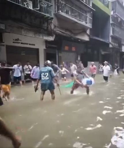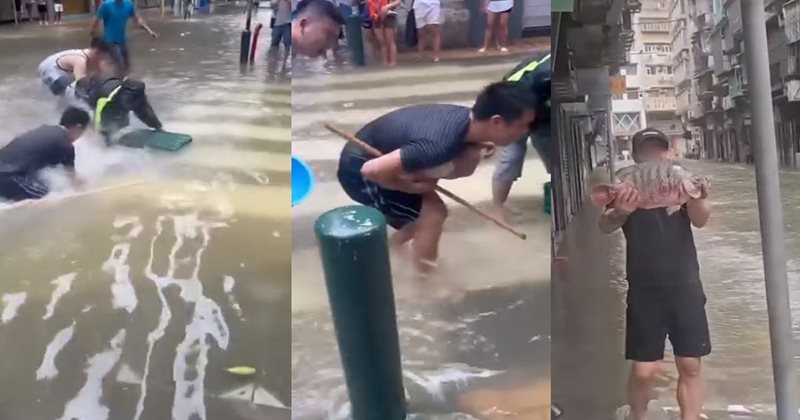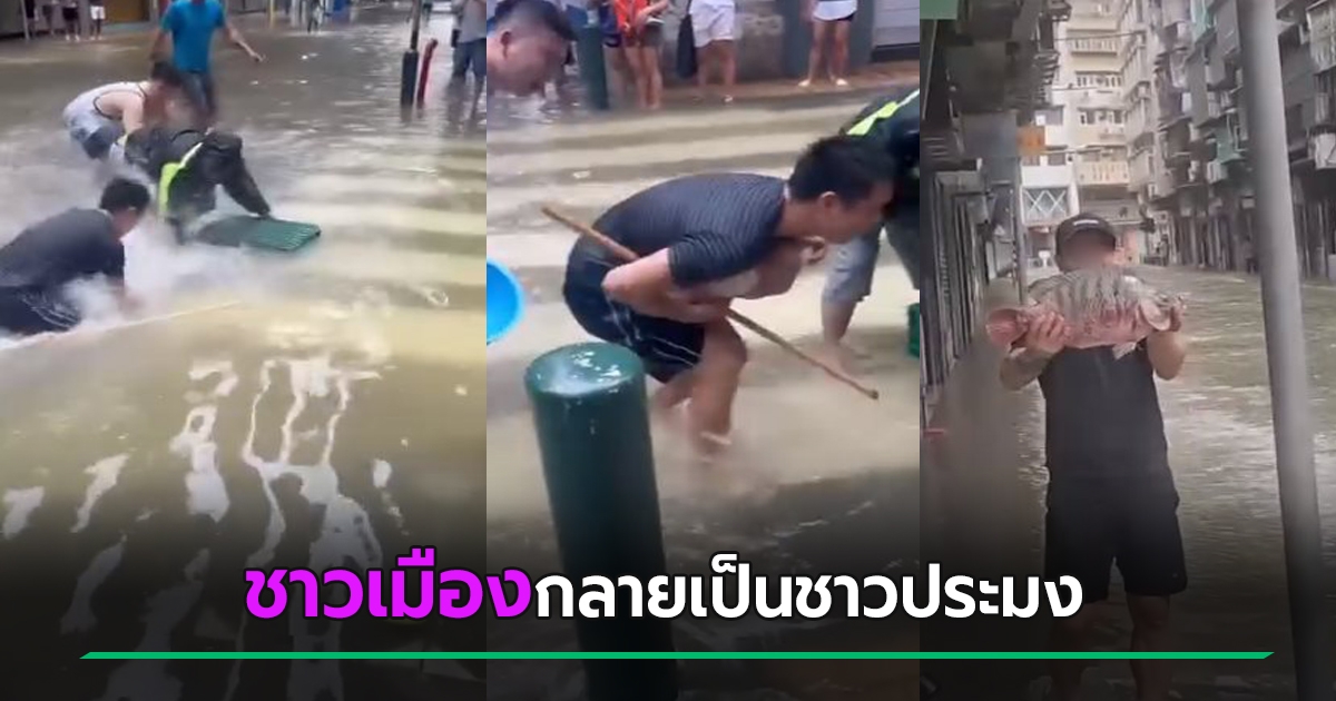 เหตุการณ์หลังไต้ฝุ่นรากาซาเคลื่อนผ่านมาเก๊า เมื่อน้ำลด คนพากันแห่ออกมาจับปลา มือเปล่ายังได้ตัวเบ้อเริ่ม จนกลายเป็นหมู่บ้านชาวประมง