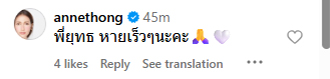 ทั้งนี้ ก็ได้มีผู้คนเข้ามาร่วมคอมเมนต์ ขอให้สรยุทธหายไว ๆ ทั้ง น้องไบรท์, หนุ่ม กรรชัย, แอน ทองประสม, เบนซ์ พรชิตา รวมถึงคนอื่น ๆ อีกมากมาย