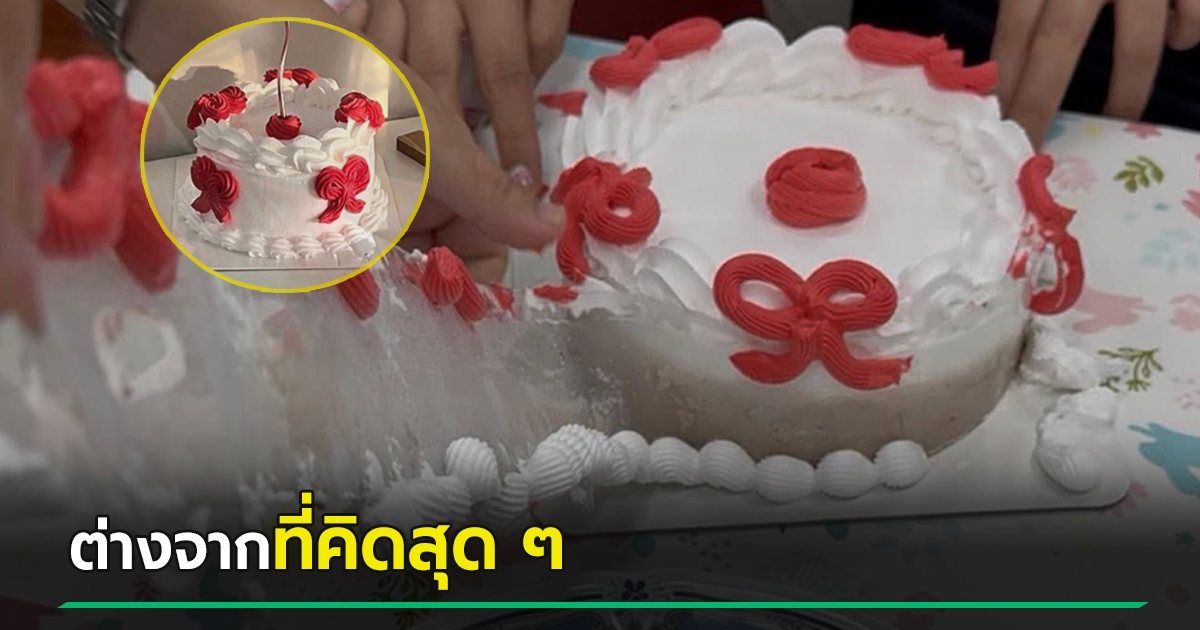 วันที่ 24 กันยายน 2568 ผู้ใช้เฟซบุ๊ก Tpsl Saranchanok โพสต์ในกลุ่ม พวกเราคือผู้บริโภค แชร์ประสบการณ์สุดงง หลังสั่งเค้กวันเกิดจากร้านหนึ่งในมาส่ง แต่เมื่อได้รับกลับพบว่าเค้กยังถูกคลุมด้วยพลาสติกแปะสกอตช์เทปรอบก้อน แถมร้านยังบีบครีมตกแต่งบนพลาสติกแทนที่จะเป็นตัวเค้กจริง ๆ
