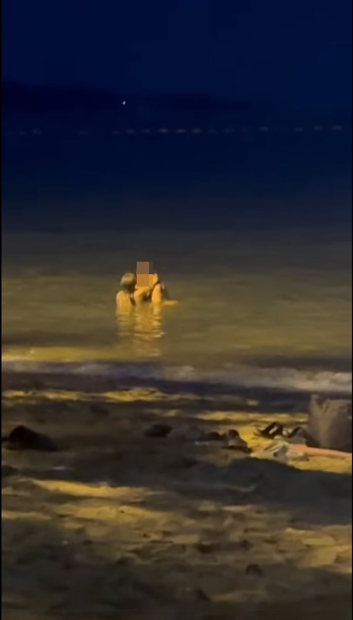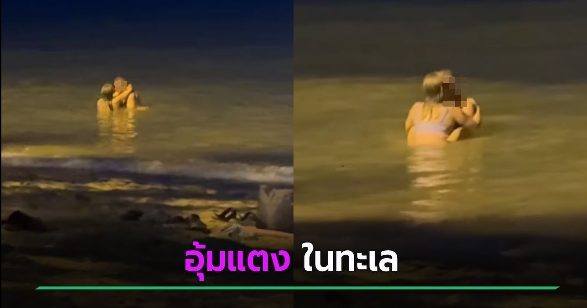 โผล่อีกแล้ว คู่รักต่างชาติเย้ยกฎหมาย อุ้มแตงพรอดรักดูดดื่มกลางทะเล ริมหาดนาจอมเทียน ท่ามกลางสายตานักท่องเที่ยว