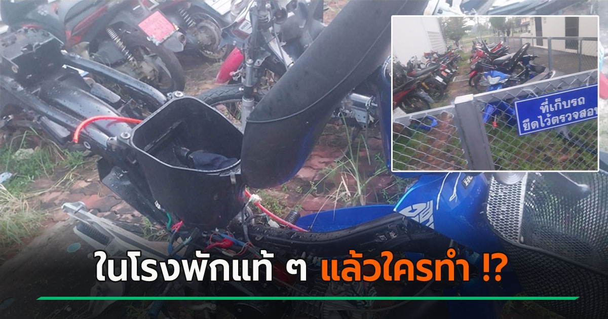 เจ้าของรถกลุ้ม โดนตำรวจยึดมอเตอร์ไซค์ไปเก็บที่โรงพัก ผ่านไปวันเดียว ถูกถอดอะไหล่ออกเหลือแต่ซาก