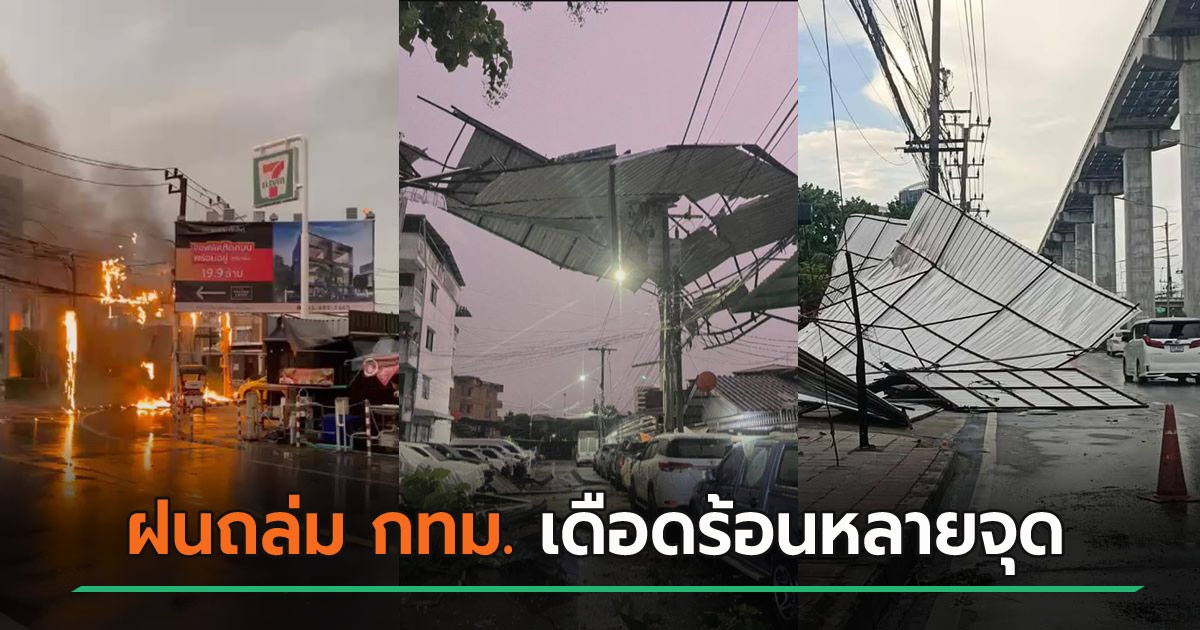 กรุงเทพฯ เจอฝนถล่มแต่เช้า ลมแรงทำต้นไม้ล้ม เสาไฟพัง หลังคาปลิว กีดขวางการจราจร รถเมล์เจอต้นไม้ทับ ด้าน จนท. เร่งแก้ไขปัญหา