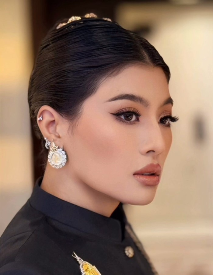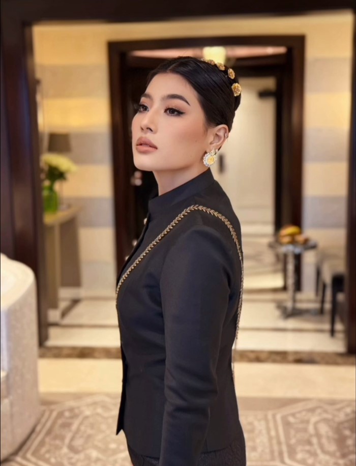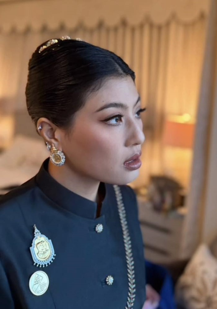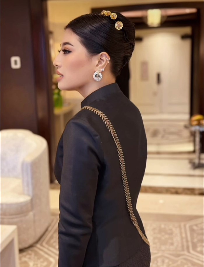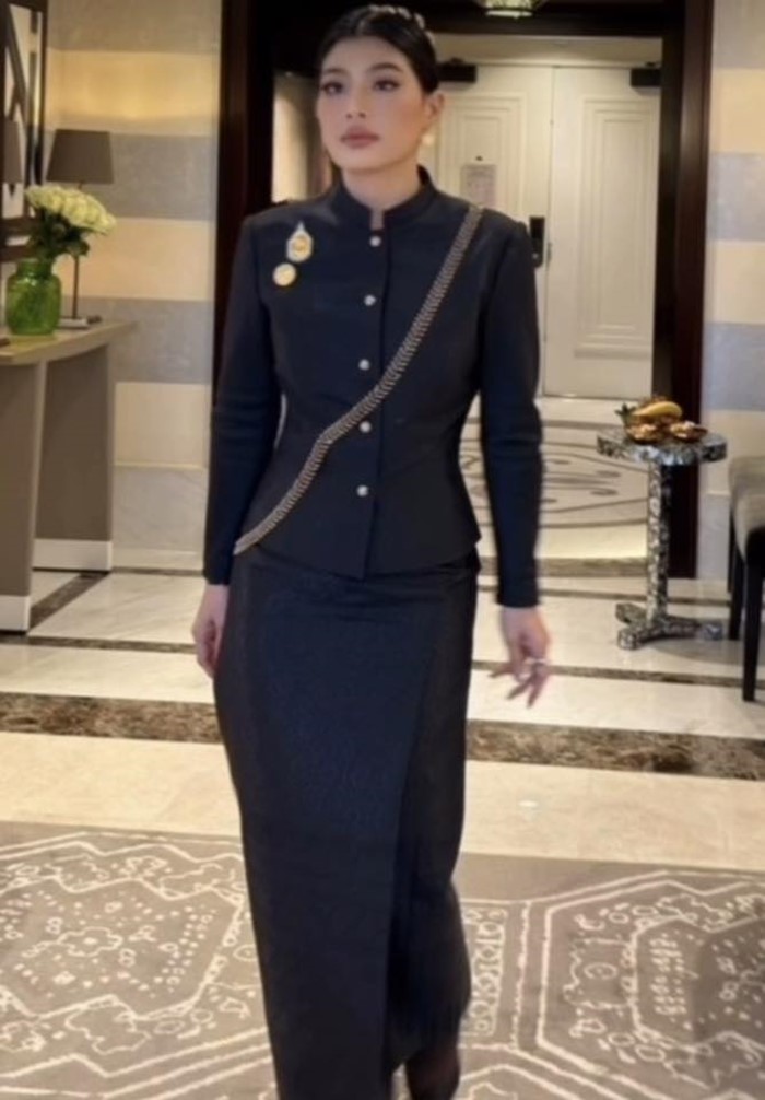 เจ้าฟ้าสิริวัณณวรี ฉลองพระองค์ชุดไทยอมรินทร์ที่ตัดเย็บจากผ้าไหมไทยสีดำ ปักยกดิ้นเงินร่วมพิธีเปิดพิพิธภัณฑ์แกรนด์อีจิปเชียนที่อียิปต์ ท่ามกลางประมุข 60 ประเทศ