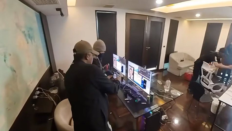 ผลการตรวจค้นพบห้อง วอร์รูมสแกมเมอร์ ภายในมีคอมพิวเตอร์ 4 เครื่องซึ่งยังเปิดค้างอยู่ ตรวจสอบเบื้องต้นพบว่าเป็น ทีมการเงินของแก๊งสแกมเมอร์ โดยตรวจพบ นวัตกรรมใหม่ คือการใช้ AI หลอก AI ด้วยการนำภาพนิ่งของเหยื่อผู้เสียหายมาเข้าสู่ระบบ AI เพื่อให้ขยับหน้าซ้าย–ขวา กะพริบตา และอ้าปาก จากนั้นนำคลิปที่ได้จากกระบวนการดังกล่าวไปใช้หลอกระบบ KYC (Know Your Customer) ของธนาคารและแพลตฟอร์มเงินดิจิทัล ซึ่งเป็นวิธีการที่อันตรายอย่างยิ่ง เพราะอาจทำให้ผู้เสียหายกลายเป็นผู้ต้องหาได้อย่างง่ายดาย