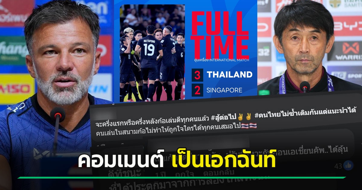 วันที่ 14 พฤศจิกายน 2568 ควันหลงจากเกมที่ ทีมฟุตบอลชายทีมชาติไทย อันดับ 96 ของโลก ลงสนามพบกับ สิงคโปร์ ทีมอันดับ