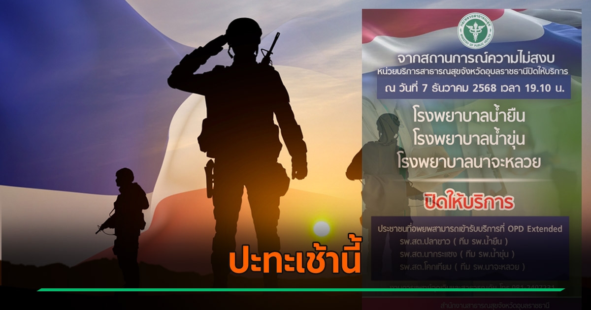 สรุปเหตุการณ์การปะทะไทย - กัมพูชา วันนี้ (8 ธ.ค.) ทำให้โรงพยาบาลชายแดน 4 แห่งต้องปิดให้บริการชั่วคราว