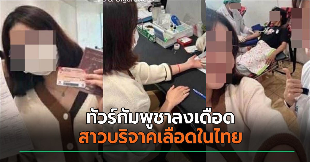 ดราม่าสนั่นโซเชียลกัมพูชา หลังมีสาวกัมพูชาบริจาคเลือดในไทย เจอชาวเน็ตแห่มาถล่มเปิดลานทัวร์ จวกยับทรยศชาติ ทรยศแผ่นดิน