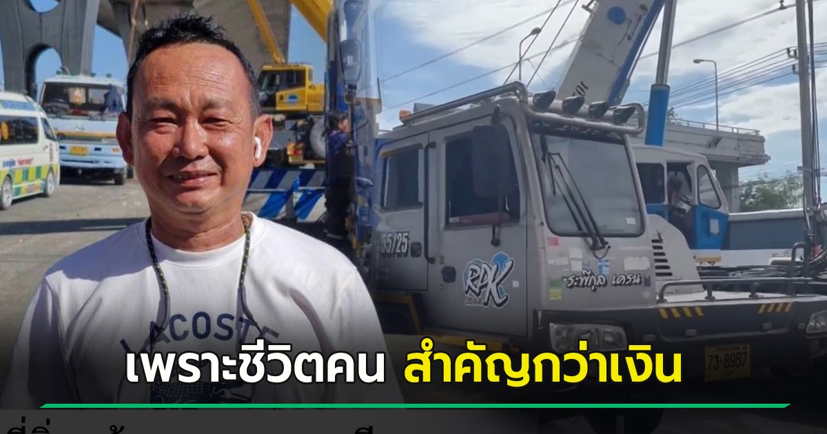 เปิดเรื่องราวของ พี่นิ่ม เจ้าของรถเครนผู้เสียสละ ยอมทิ้งรายได้หลักแสน รีบมาจากชลบุรี ช่วยเหตุสะพานลอยถล่มเส้นบางนา-ตราด เผยชีวิตคนมีค่ามากกว่าเงิน