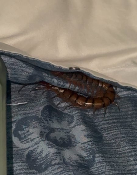 โดยหญิงสาวบรรยายถึงเหตุการณ์ว่า "ผลลัพธ์ของการต่อสู้" ต้องใช้ยาฆ่าแมลงเกือบหมดกระป๋องเพื่อจัดการตะขาบตัวนี้"