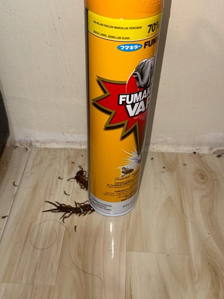 จากนั้นต่อมา เธอได้อัปเดตภาพเพิ่มเติมที่ทำให้หลายคนโล่งใจ เป็นภาพที่เธอได้จัดการใช้สเปรย์ยาฆ่าแมลงฉีดพ่นจนมันแน่นิ่ง แล้วเอากระป๋องตั้งทับมันไว้