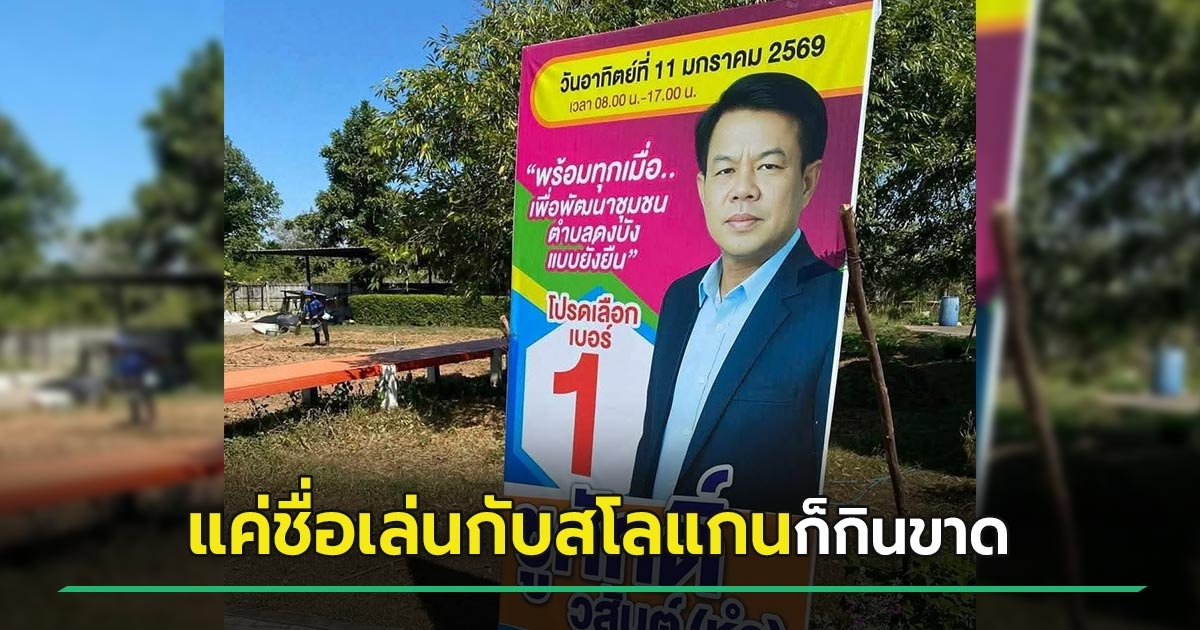 ไวรัลป้ายหาเสียงเลือกตั้ง 2569 อบต.ดงบัง เมื่อผู้สมัครดันชื่อเล่นเป็นศัพท์คำหนึ่ง สโลแกนเด็ดดวงทำเอาฮาเลย