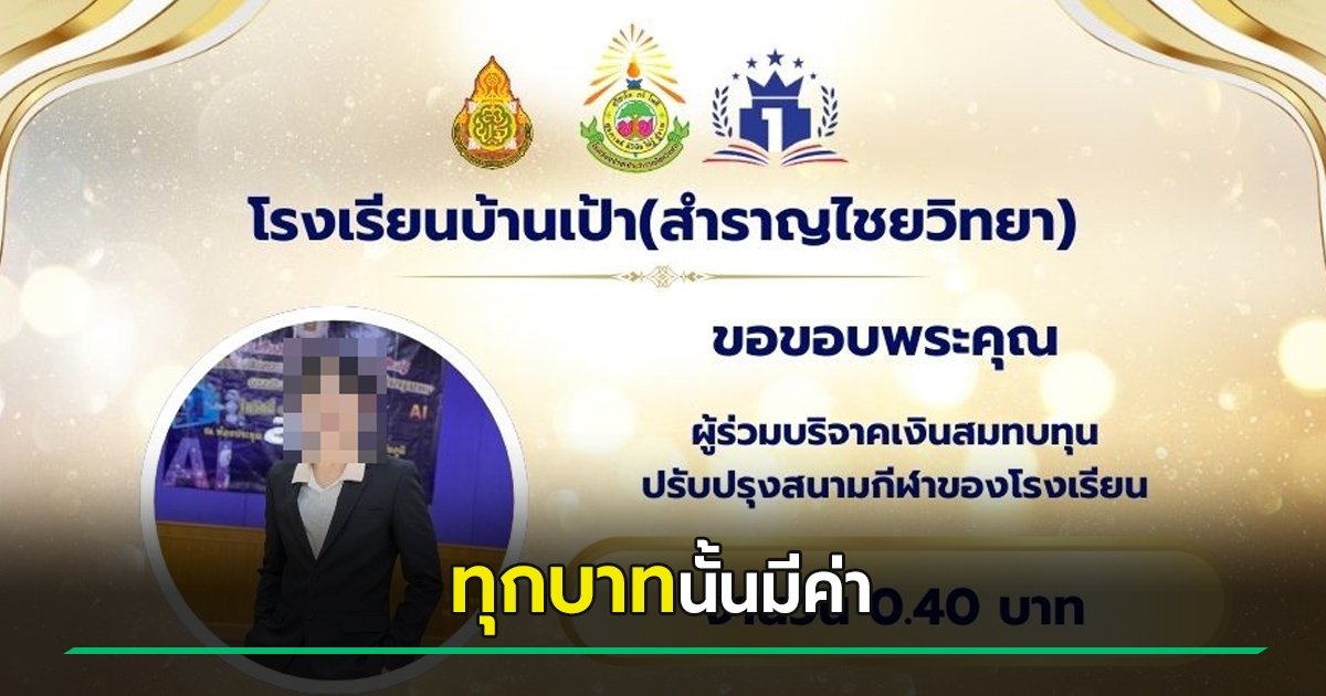 วันที่ 31 ธันวาคม 2568 เฟซบุ๊ก โรงเรียนบ้านเป้า (สำราญไชยวิทยา) จ.ชัยภูมิ มีการประกาศระดมทุนปรับปรุงสนามกีฬาของโรงเรียน ซึ่งมีคนสนใจบริจาคอย่างล้นหลาม และทางโรงเรียนก็ทำป้ายประกาศขอบคุณในเพจ เพื่อตอบแทนทุกน้ำใจของคนที่บริจาคทุกคน
