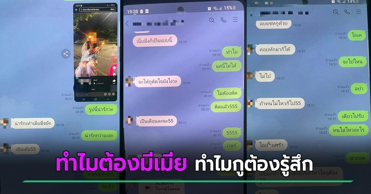 เพจดังลุยต่อ แฉเคส บี๋ 2 เข้าทำนองเมียเผลอแล้วเจอกัน พบแชตหวาน คุยหยาบแต่บอกรัก - คิดถึง แถมยังลั่น "คนไม่เป็นเมียจะตายแล้ว"