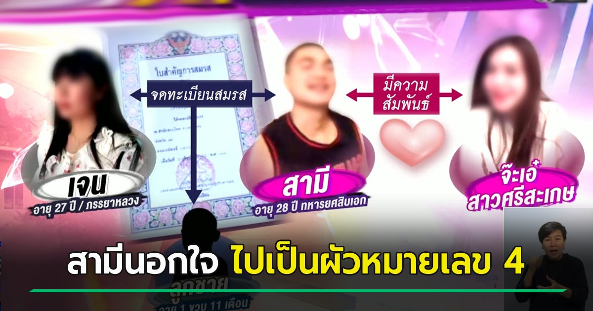 เมียหลวงสุดช้ำ ผัวทหารอ้างไปรบชายแดน ที่แท้แอบซุกเมียน้อย แถมฝ่ายหญิงคบซ้อนผัว 4 คน ทั้งทหาร-ตำรวจ แต่รักสามีตนมากที่สุด