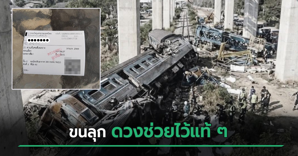 วันที่ 14 มกราคม 2569 โลกออนไลน์แชร์โพสต์ของผู้ใช้เฟซบุ๊ก Siripensopa Bangthamai เผยภาพตั๋วรถไฟขบวนด่วนพิเศษ ขบวน 21 กรุงเทพฯ - อุบลราชธานี เที่ยวที่ประสบอุบัติเหตุดังกล่าว ซึ่งเคราะห์ดีที่คนในครอบครัวตัดสินใจทิ้งตั๋ว ไม่ได้เดินทางไปกับขบวนนั้น จึงทำให้รอดชีวิตมาได้อย่างหวุดหวิด
