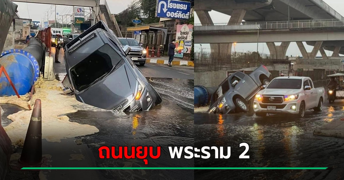 เมื่อเวลา 06.30 น. เกิดเหตุพื้นถนนยุบตัว บนถนนพระราม 2