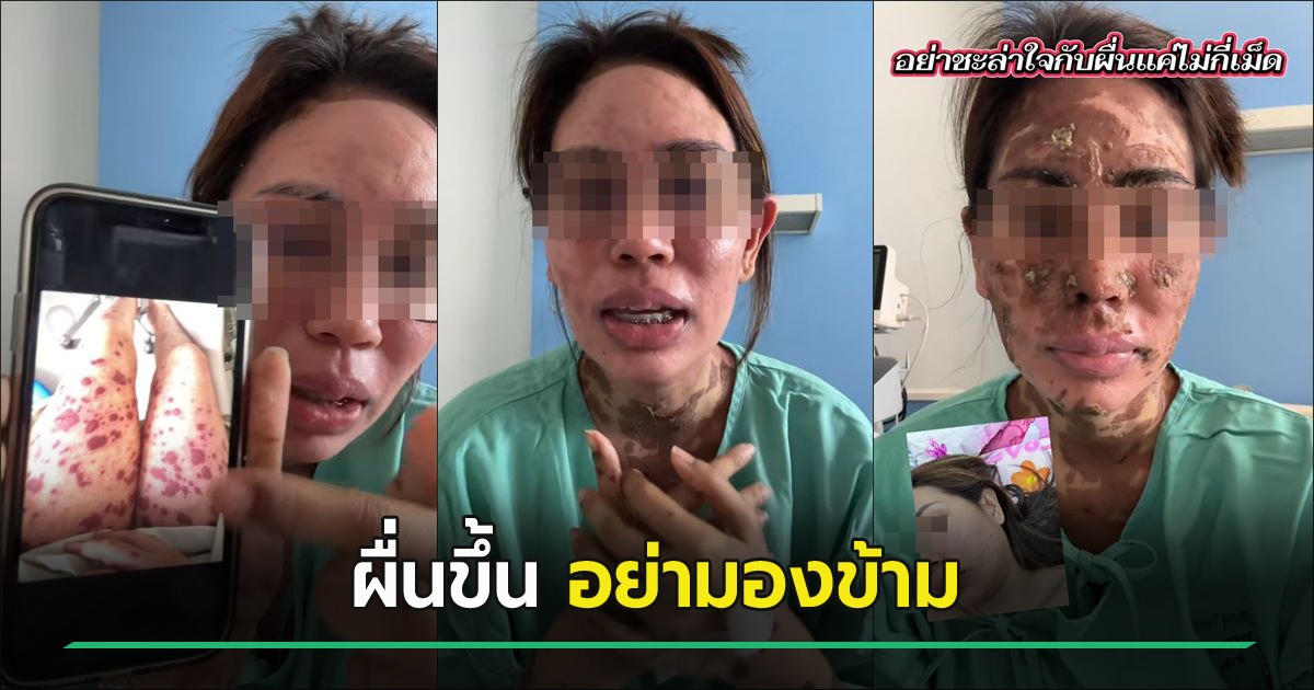 สาวเตือนภัย จากผื่นเล็ก ๆ กลายเป็นตุ่มน้ำพองและรอยไหม้ทั่วตัว แนะอย่าชะล่าใจ เพราะอาการลุกลามได้ภายในไม่กี่วัน พร้อมเผยอนวทางรักษา