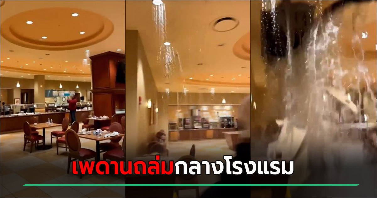 เมื่อฝ้าเพดานในโรงแรมสหรัฐอเมริกา เกิดถล่มลงมาอย่างรุนแรง