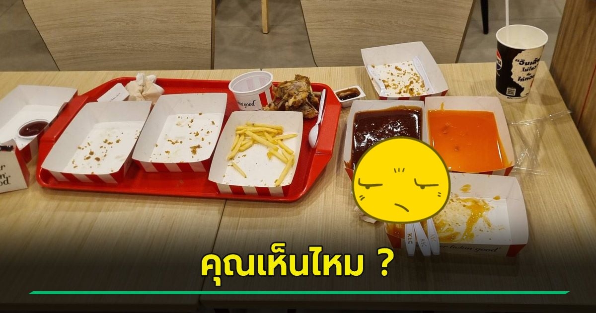 มีการโพสต์โต๊ะในร้านเคเอฟซีที่มีการวางขยะหลังกินอาหารเสร็จ