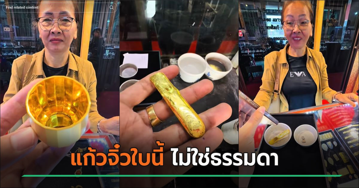 โดยหญิงรายนี้เปิดเผยว่า แก้วน้ำทองคำใบนี้ เป็นของที่น้าได้มาจากประเทศญี่ปุ่น เก็บมานาน 6-7 ปีแล้ว กระทั่งตอนนี้น้าเสียชีวิต เธอจึงได้รับมาเป็นมรดก ซึ่งก็ไม่รู้ว่าเป็นทองคำจริงหรือไม่