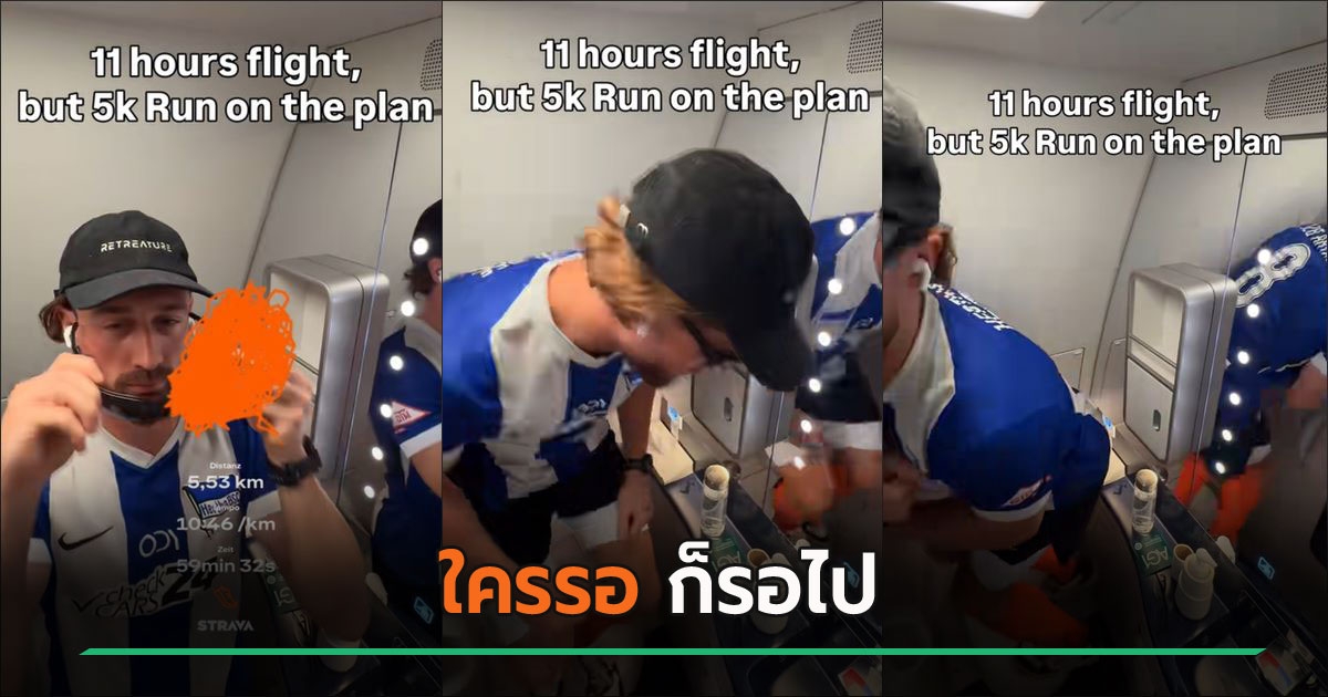 เอาจริงดิ ? อินฟลูฯ สายวิ่ง ซ้อมวิ่งได้ทุกที่ บนเที่ยวบินยาว 11 ชั่วโมง ยังไม่พัก เข้าไปวิ่งวนในห้องน้ำเครื่องบินเกือบชั่วโมง ทำระยะทาง 5 กม. จนเป็นดราม่า