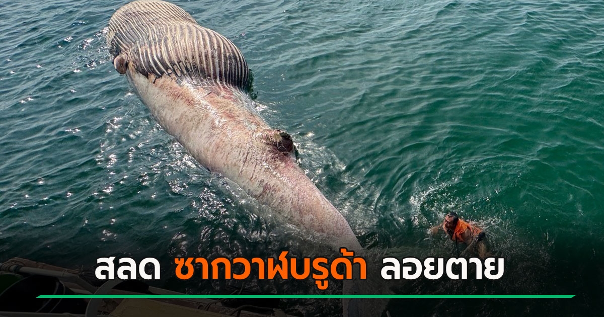 พบซาก วาฬบรูด้า ยาว 10 เมตร ลอยอยู่บริเวณชายฝั่งทะเลสมุทรสาคร เร่งนำซากเข้าฝั่งเพื่อตรวจสอบและชันสูตรหาสาเหตุการตาย