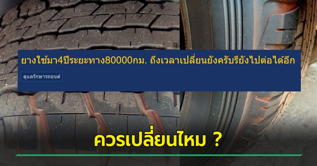 ยางใช้มา 4 ปี วิ่งมา 8 หมื่นกิโลเมตร แบบนี้ควรเปลี่ยนไหม เพียงแค่ดูภาพ ชาวเน็ตต่างเข้ามาตอบเป็นคำตอบเดียวทันที ทฤษฎีกับความจริงไม่จำเป็นต้องเหมือนกัน